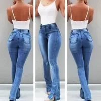Femmes Vacances Du Quotidien Mode Style Simple Vêtement De Rue Couleur Unie Toute La Longueur Lavé Trou Pantalon Évasé Jeans