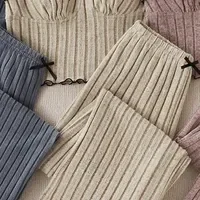 Ensemble De Pyjama Femme Avec Nœud Striped Longues Pantalons Maison Vêtements Décontractés Sans Manches Confortables Polyester Coton