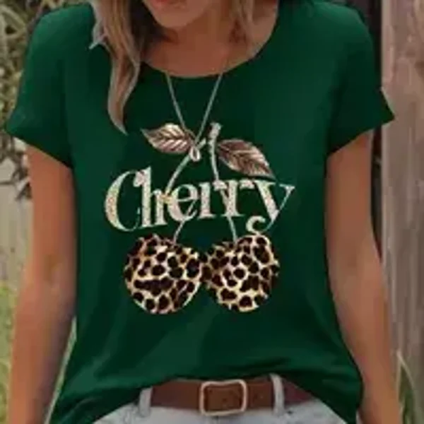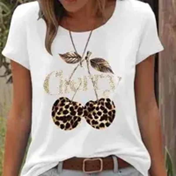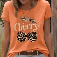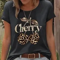 T-Shirt Pour Femmes en Coton (plus De 30%) Polyester Décontractée Vêtement De Rue Cherry/Cerise Léopard